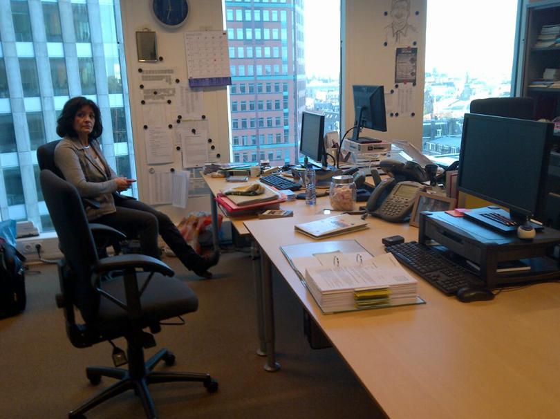 Hoftoren, kamer 11.101: Op een willekeurige werkdag zat jij bij Joyce’s werkplek op de verwarming. Zegt George: “straks gaan ‘ze’ meuren..” Ik (Joyce) heb nog nooit van mijn leven zo hard gelachen en ik bleef de hele dag grinniken als ik eraan dacht, tot verbazing van andere VO-collega’s.
