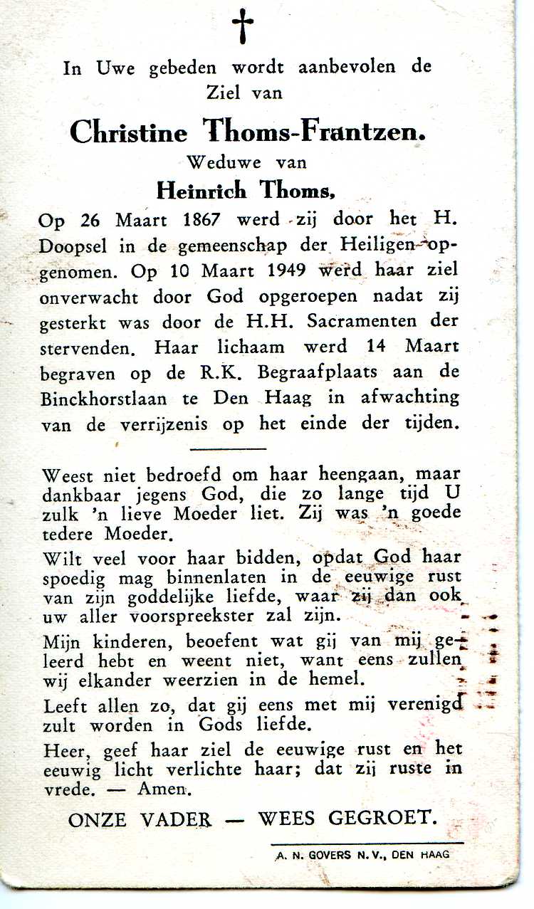 Overgrootmoeder Christine Thoms-Frantzen (1867-1949)
